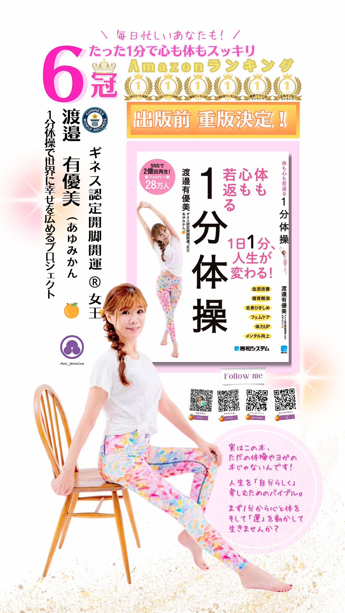 はじめまして、渡辺有優美と申します。SNSでは「あゆみかん 1分体操で世界に幸せを広げる人」として活動しております。最近、X(旧Twitter)では「1分体操で世界に幸せを広めるプロジェクト」という名前に変更しました。