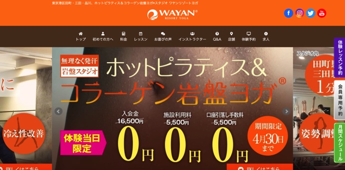 岩盤ホットヨガ&ピラティススタジオ ワヤンリゾートヨガ(東京都港区)