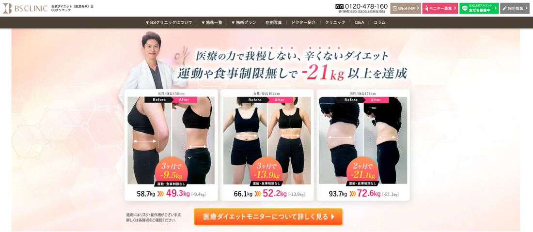 BSクリニックは、短期間で成果の出るダイエットやリバウンドしにくい身体を実現し、ダイエットで悩んでいる方に寄り添った痩身治療専門のクリニックです。医学的・科学的根拠に基づいたダイエットで美しく痩せるという価値を提供し、理想のボディメイクを実現します。