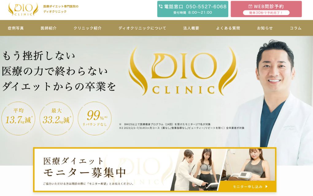 医療ダイエット専門医院のディオクリニックは、「激しい運動なし」「過度な食事制限なし」「手術なし」というダイエットの3大ストレスから解放される医学的・科学的根拠に基づいた医療ダイエットサービスを開発しています。
