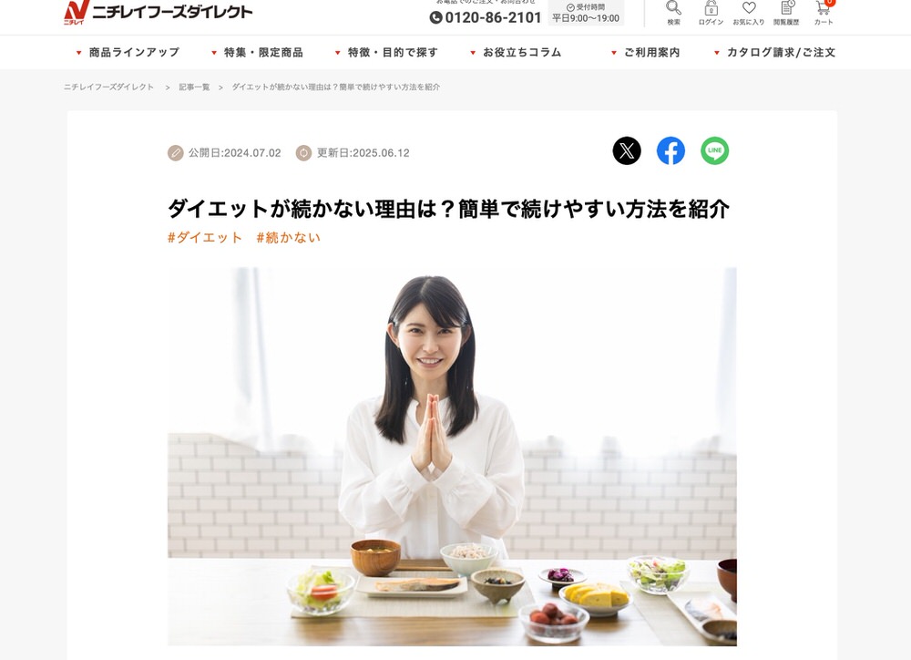 「ニチレイフーズダイレクト」は、冷凍食品の大手メーカーであるニチレイフーズが運営する、健康やダイエットに関する情報を提供するウェルネスサイトです。