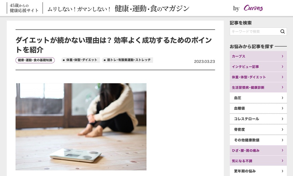 本章で紹介しているサイトは、ダイエットが続かない人にこそ見てほしい「続けるためのヒント」が詰まったサイトです。
