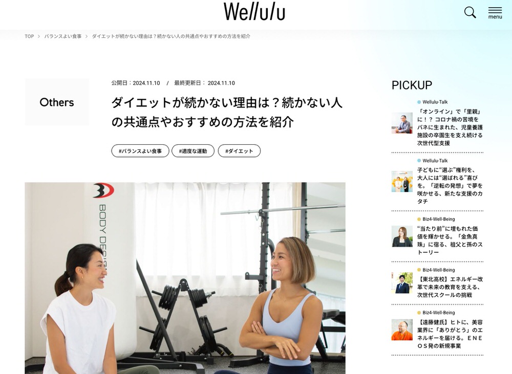 「Wellulu」は、健康的なライフスタイルやウェルビーイングに関する情報を提供するメディアサイトです。専門家の監修による信頼性の高い記事が特徴で、ダイエットや運動、睡眠、食事など多岐にわたるテーマを扱っています。