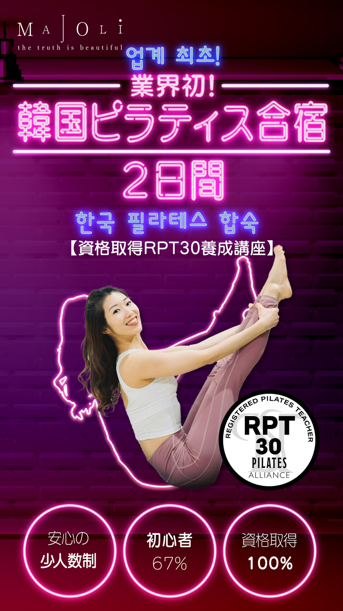 ヨガ・ピラティスの国際資格が取得できることで有名なMAJOLIで、なんと1泊2日の韓国ピラティスコースがあります。