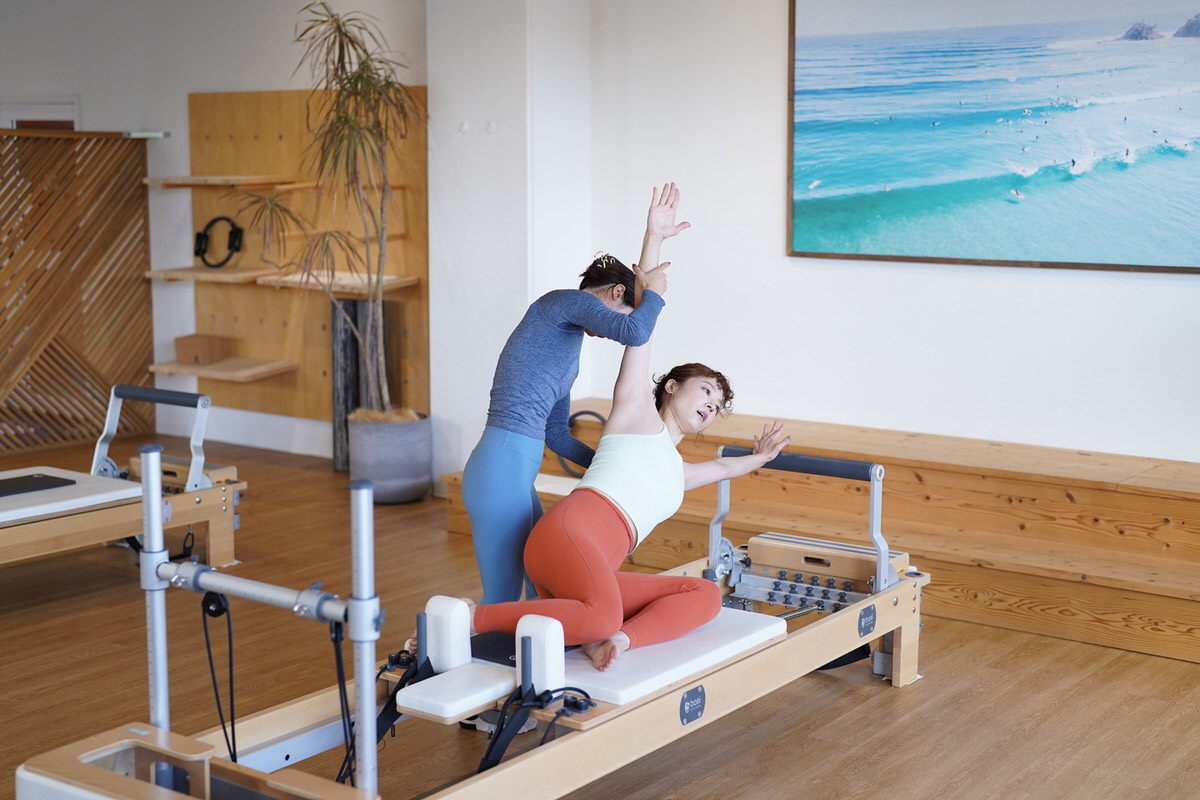 マシンピラティスは初心者の方でもマシンの力をかりることで、正しいフォームでピラティスを行いやすいというメリットがあります。