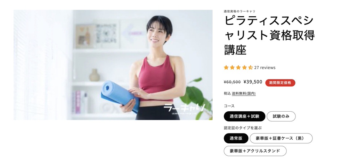 通信資格のラーキャリが行っている講座と認定試験がセットになっている、JSADA(日本技能開発協会)のピラティススペシャリスト資格。学んだ内容を活かして、インストラクターを目指すことも可能です。