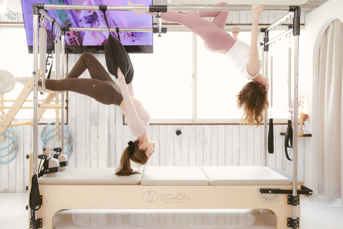 schon pilates & beautyは完全予約制のビューティースタジオです。パーソナルレッスン、ペアレッスン、グループレッスンのマシンピラティスのほかにもエステやよもぎ蒸しなどのメニューもあります。