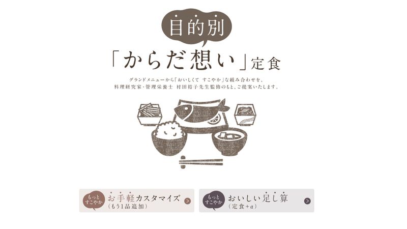 大戸屋では「からだ想い定食」と称して、目的別にグランドメニューからおすすめの組み合わせを提案しています。