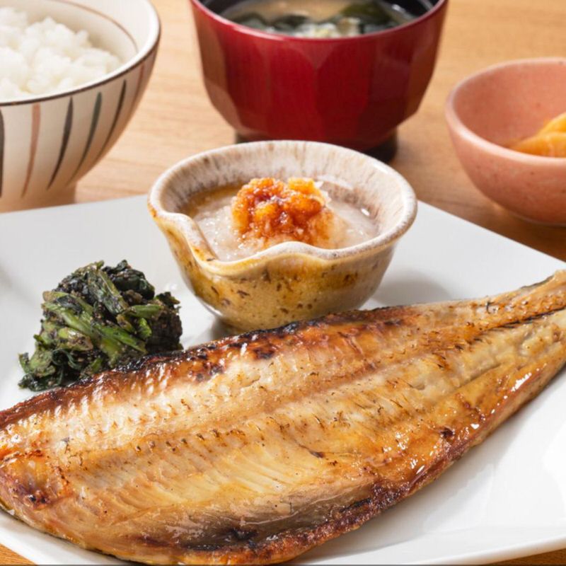 「しまほっけの炭火焼き」は、肉厚のしまほっけをふっくらと焼き上げた定食です。ほっけはボリューム感があり、たんぱく質をしっかり摂れる食材として知られています。