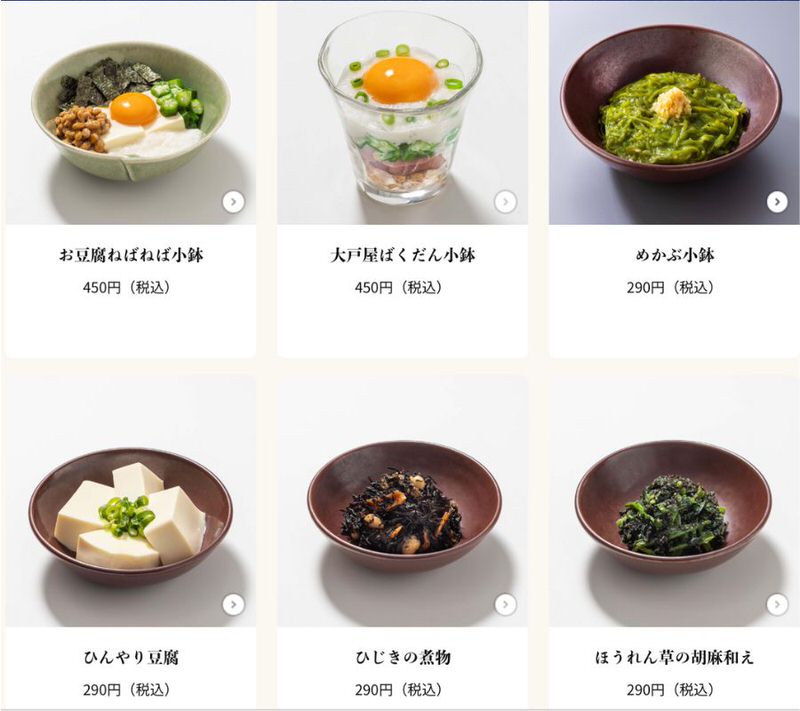 大戸屋は、サイドメニューも充実しています。野菜やおかずなど、もう少し食べておきたい時や栄養素をプラスしたいときにおすすめです。