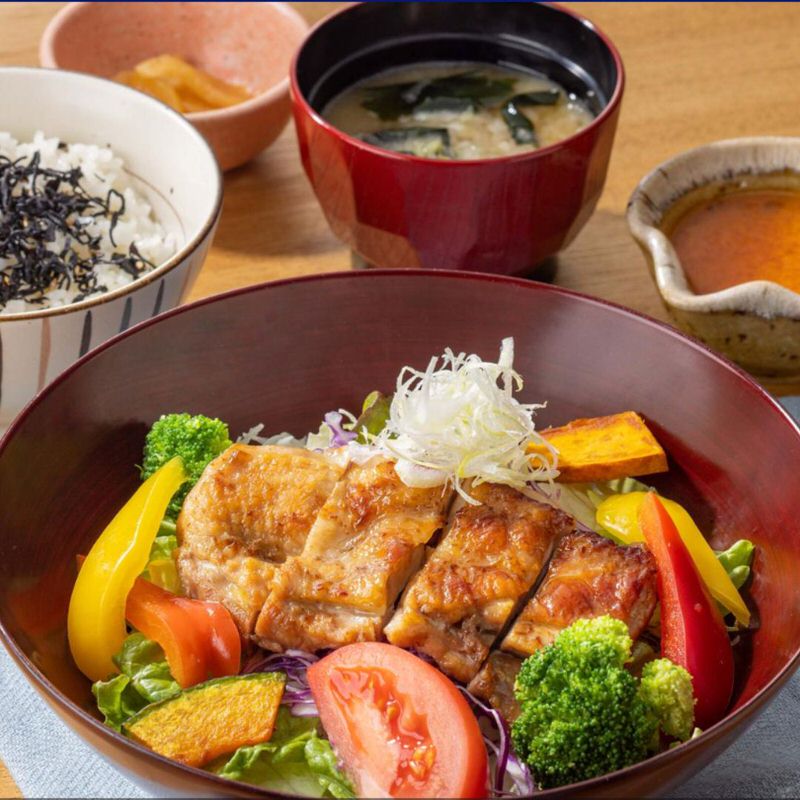 - もろみチキンの彩りサラダボウルとしそひじきご飯
