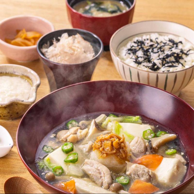 - 鶏肉とお豆腐ねばねば野菜のトロトロ煮としそひじきご飯(店舗限定)