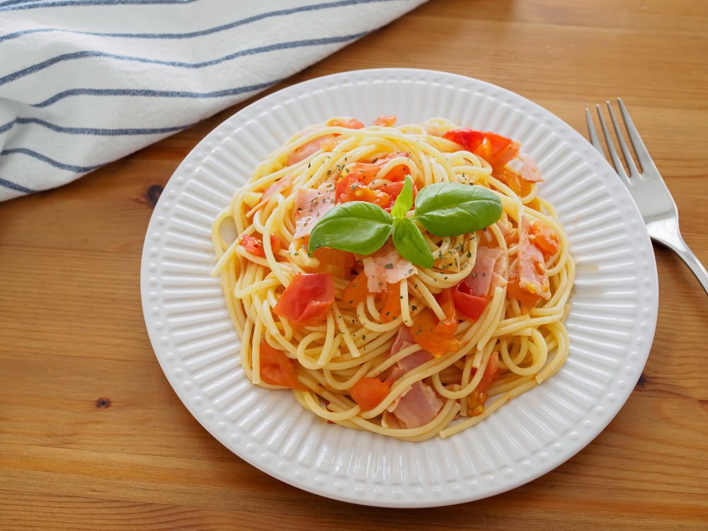 トマトベースのパスタは脂質が少なくカロリーも控えめで、アレンジもしやすくダイエット中におすすめのソースです。トマトにはリコピンなどの抗酸化成分が含まれており、健康や美容の面でもメリットがあります。