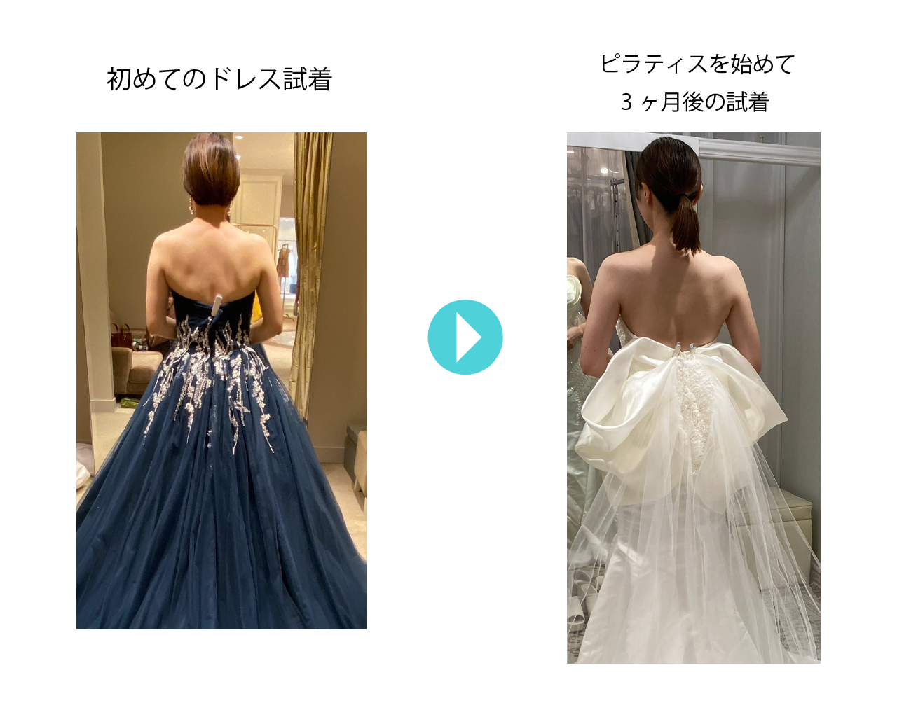 でも3ヶ月のピラティス習慣を経て、当日着たドレスは全く違う印象に。