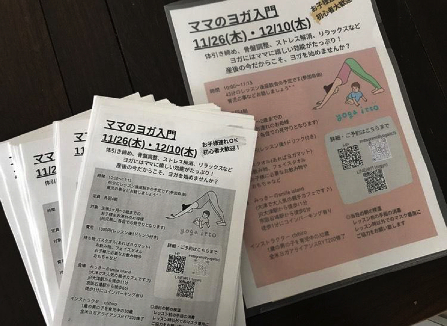 お子様連れOK、ママに向けたイベントを開催したのですが、参加者の皆さまがヨガを楽しんで下さり、さらにママ友の輪が広がっている所を見るのが本当に嬉しく幸せな時間でした。