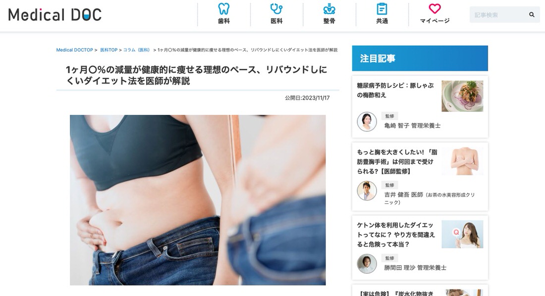 そのほか、医師の観点から見たダイエットのメリットも紹介しているので、病気にかかりにくい体づくりをしたい人にもおすすめのサイトです。