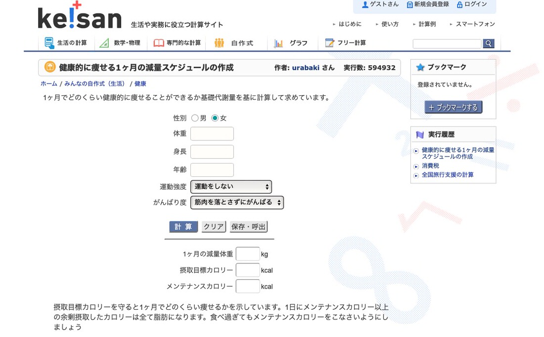 おすすめの減量スケジュールサイト4つ目は、「keisan」です!「keisan」はお金の計算や単位の計算、統計関数の計算など、あらゆる「計算」に特化したサイトです。
