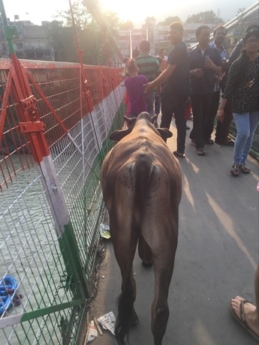 狭い橋を車は通れず、人と、自転車と、牛がひしめき合いながら渡っていました。